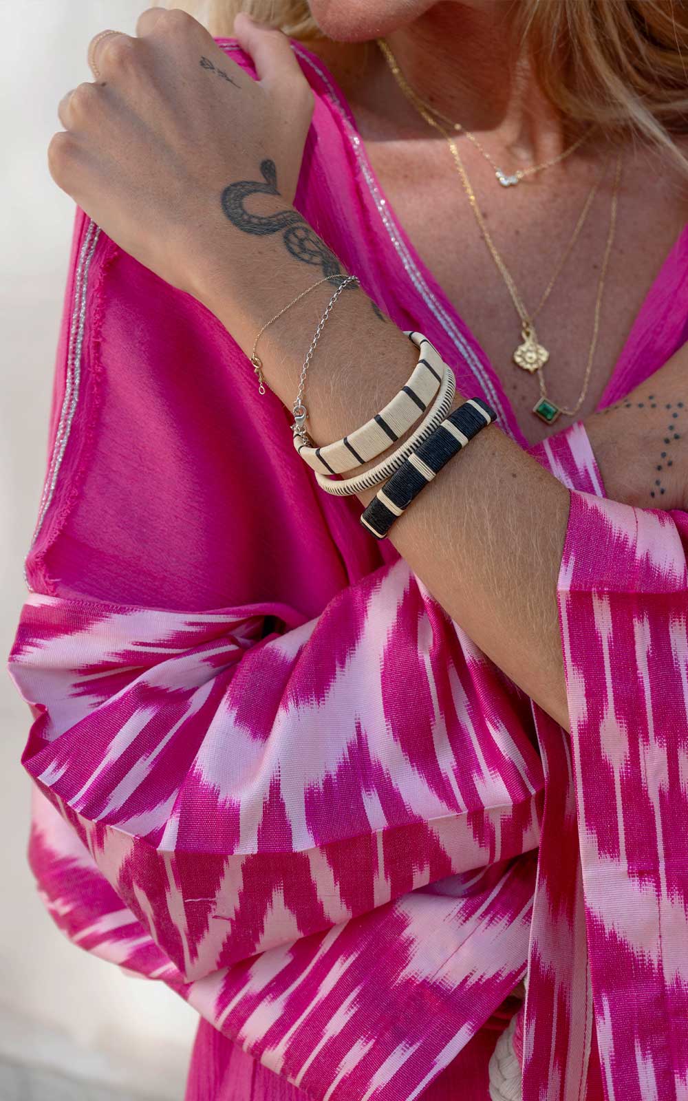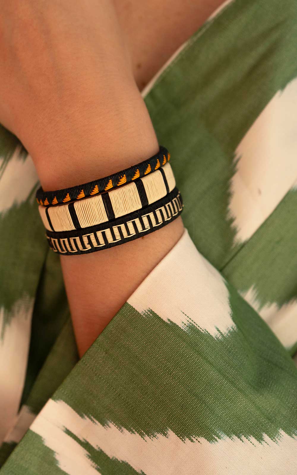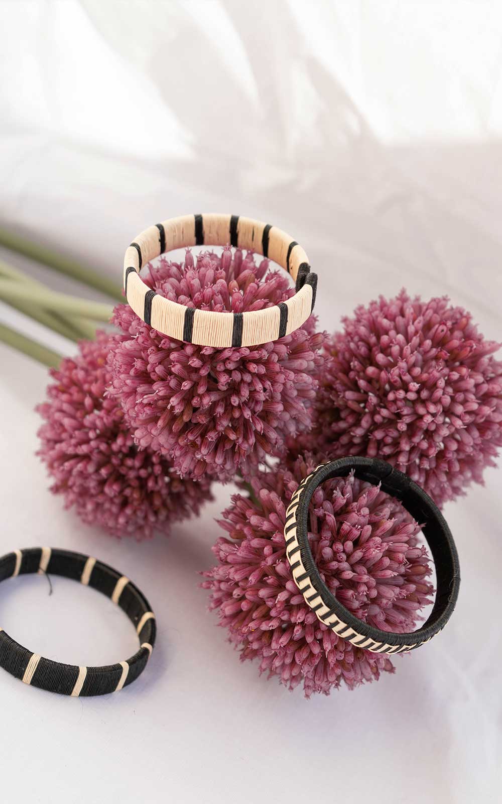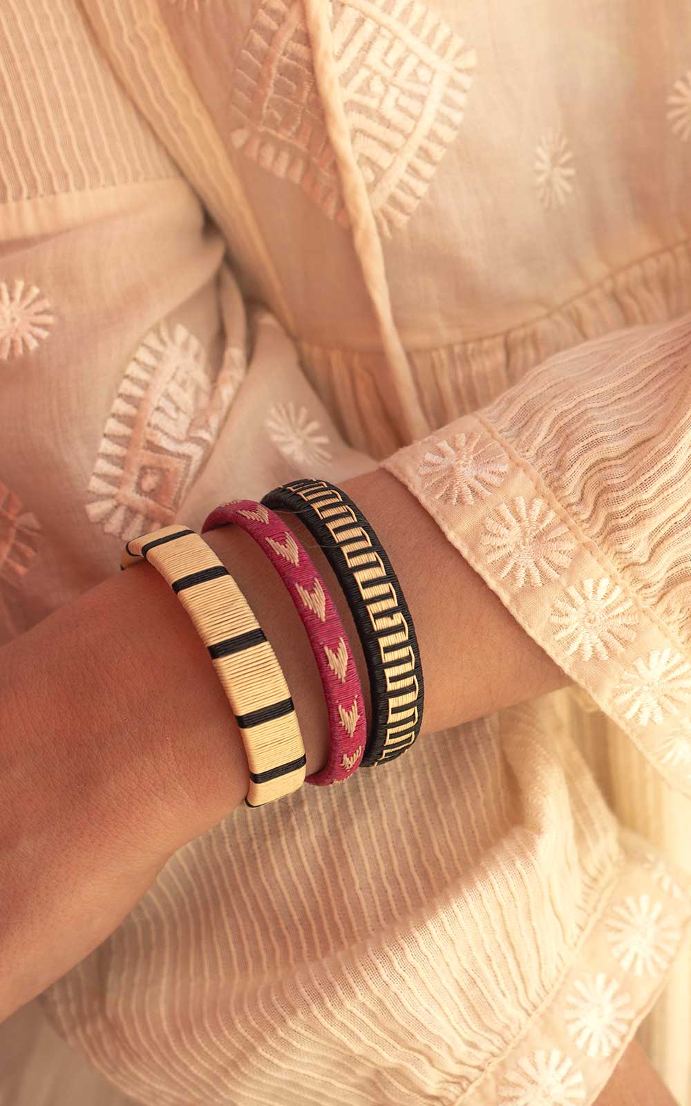 Pulsera fabricada artesanalmente con hilo de fibra natural obtenido de la palma de werregue, característica de Colombia. Recomendamos usarla con varias pulseras de diferentes colores de 5mm.
