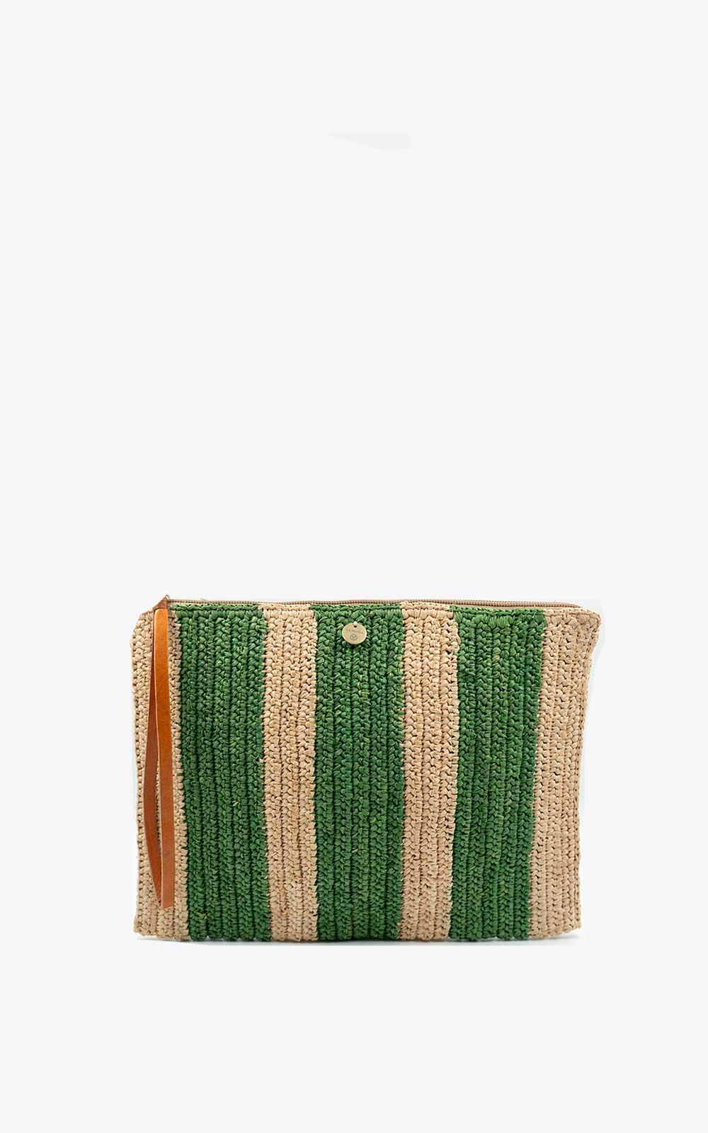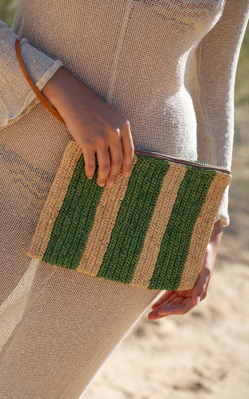 Cartera de mano de rafia realizada a mano por artesanas de Madagascar. El cierre es de cremallera y tiene interior forrado en tela. Este modelo es ideal con el color de la temporada