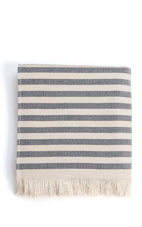 Las toallas de playa Barra, con sus finas rayas, están inspiradas en el faro de Barra, en Praia da Barra, Aveiro, el mayor faro de Portugal.