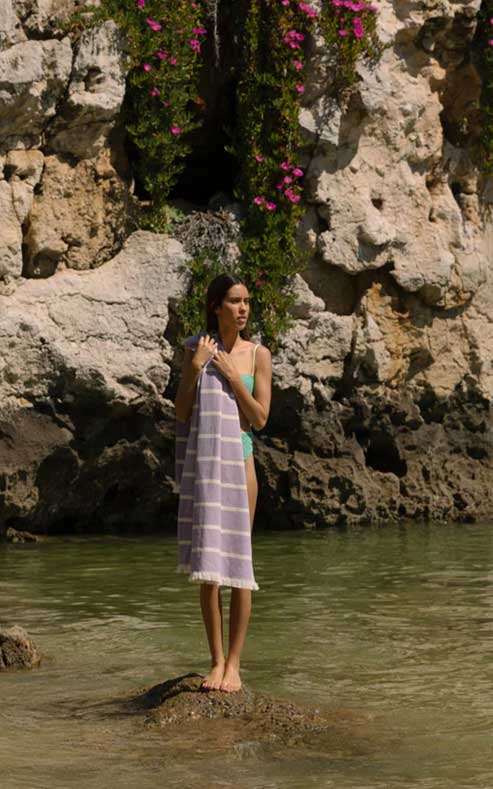 Fabricadas en algodón 100% de alta calidad, nuestras toallas de playa tienen tejido de rizo en el reverso, perfecto para absorber las gotas de agua en su piel después de un fresco baño en el mar, y tejido de fouta en el anverso, para garantizar un baño de sol cómodo y con estilo.