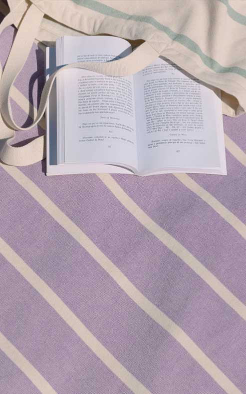 as toallas de playa Belém, con sus anchas rayas, se inspiran en el faro de Belém, situado en Lisboa, junto al río Tejo.